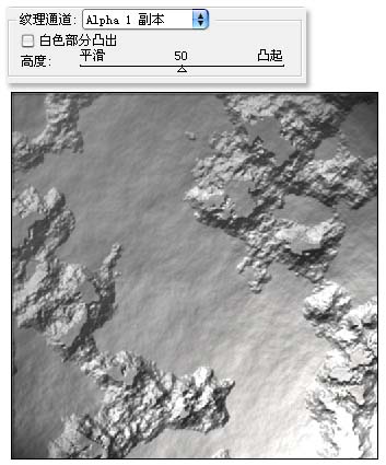 | 5、继续执行“光照效果”滤镜,“纹理通道”选择为“Alpha1副本”通道。 |