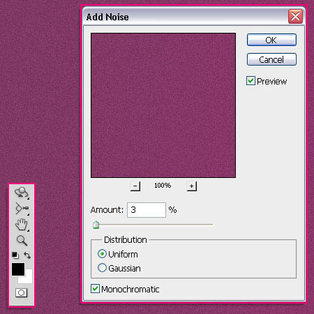 2、设置前景色和背景色为黑色和白色背面,然后去滤镜>杂色>添加杂色 。设置为3%,平均分布 ,单色。 |