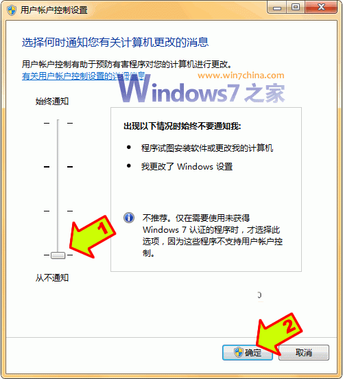 ——打开“控制面板”,点击“系统和安全”,选择“操作中心”,点击“安全”,在展开的详细设置内容中找到并点击“用户帐户控制”下方的“选择您 UAC级别”,然后在弹出的对话框中将左边的滑杆调整为“从不通知”,再点击“确定”就可以禁用UAC了(需要重新启动系统才能生效)。