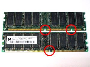 从外形上看DDR内存条与SDRAM相比差别并不大,它们具有同样的长度与同样的引脚距离。只不过DDR内存条有184个引脚,金手指中也只有一个缺口,而SDRAM内存条是168个引脚,并且有两个缺口。