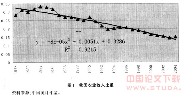 改革开放以来,我国的农业收入比重呈现下降趋势(见图1),即符合工业化进程的特点。
