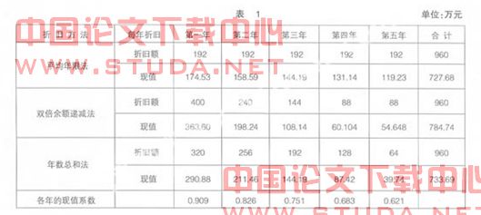 对固定资产用不同的折旧方法每年计提的折旧额及现值进行分析、比较如下: