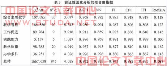 从表3中可以看出,综合素质教学、教学管理、工作促进、实践能力、教学质量、办学条件的GFI、AGFI、NNFI、CFI、IFI等指标的值均在0-1之间,而且十分接近1。同时其省俭性指数也可接受,说明高职教师工作满意度六个因子的拟合较好,是理想的拟合模型。
