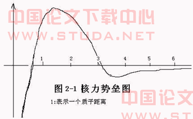 核力是两种不同性质的力的组合,在相邻两质子之间表现出的核力势垒图如图2-1.