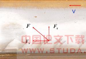 钢轨踏面斜裂纹多数发生在曲线外股钢轨的内轨角处、曲线内轨顶面外侧、车轮轮缘根 部和车轮踏面尾部。图 2 给出了轮轨作用力与外股钢轨斜裂纹关系示意图。以曲线外股钢轨 的内轨角处斜裂纹为例:当轮对通过曲线时,外轨处的车轮轮缘贴靠外轨内角处向前滚动,而另一侧车轮踏面尾部和内轨顶部外侧发生接触。由于左右车轮滚动半径不同和轮对的摇头 角产生,滚动轮径差引起外轮轨之间有较大的纵向切向力 Fx , 轮对的摇头角较大和横向运动 引起横向切向力 F ,导致外轮与曲线外轨内侧接触切应力 F 极大。当轮轨接触压应力超过钢轨接触疲劳强度或抗塑性变形许用值时,踏面表层金属产生塑性变形,在此反复接触切应