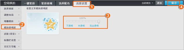 第二步:选择“高级设置”中“模块透明度”,在设置透明度的滑条中左右滑动就可以进行设置,设置达到您的效果之后,保存即可。