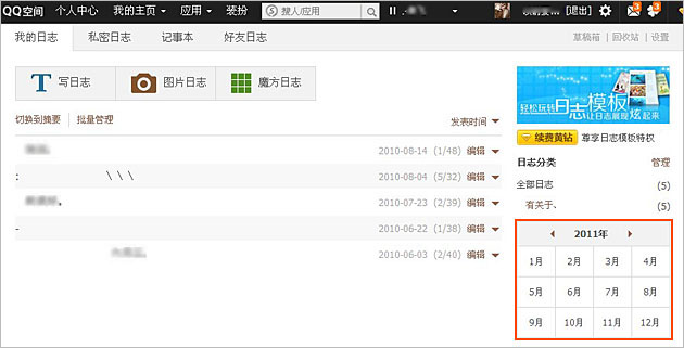 QQ空间日志“按日期”分类功能介绍