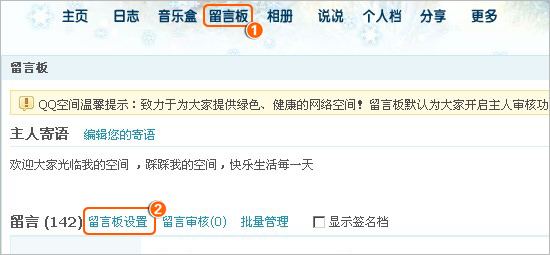 设置留言板“留言审核”功能后,非好友在您QQ空间留言板发表的留言,留言内容需要由空间主人审核后方可显示在留言板,“留言审核”支持批量操作审核。